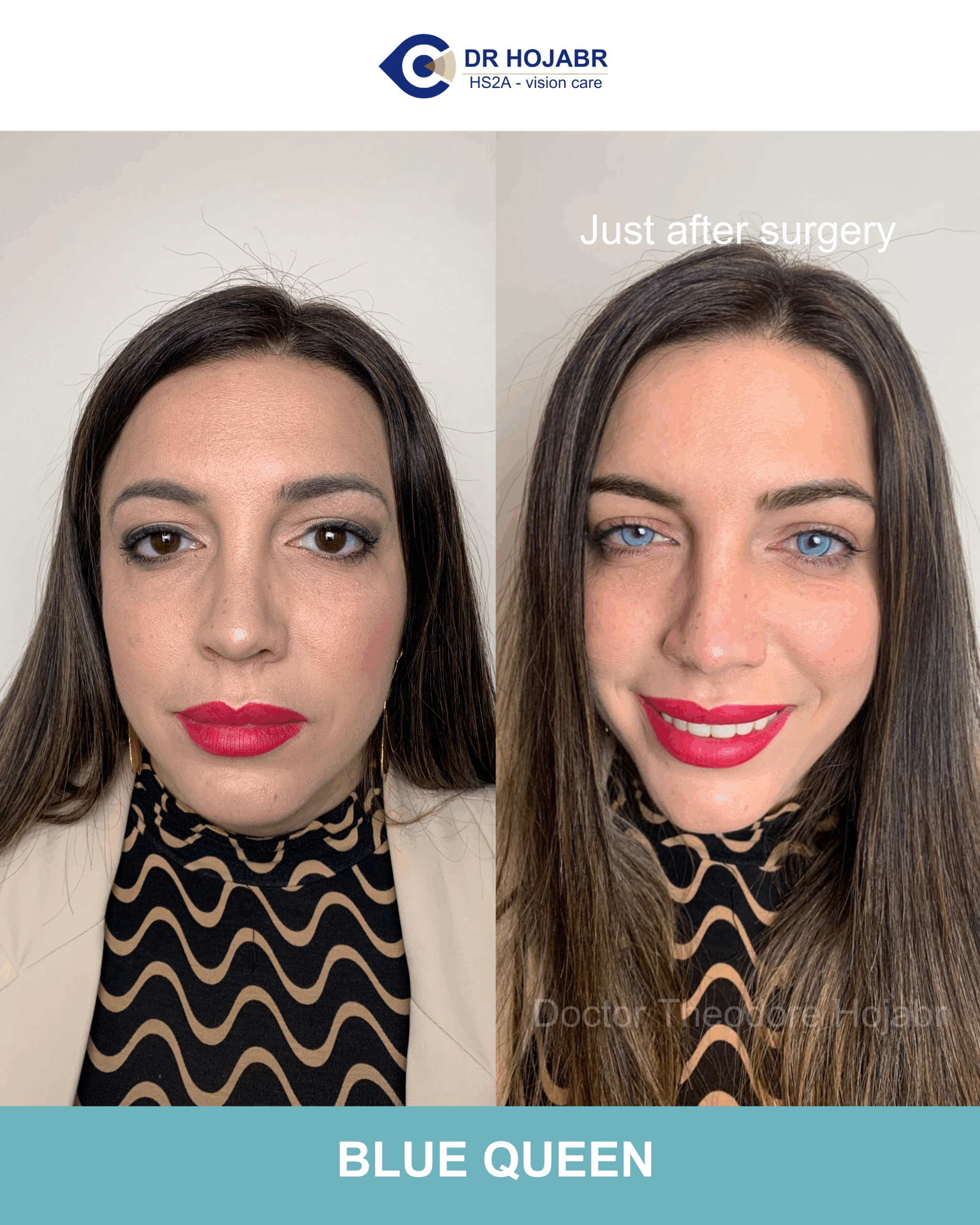SIMULATONS : Avant de faire une kératopigmentation une simulation est faite avec la couleur choisie, permettant de se projeter avec son nouveau regard.