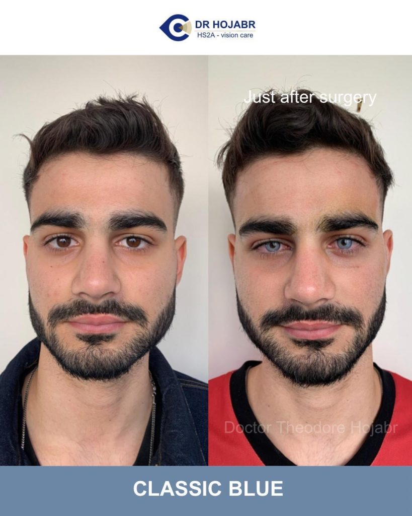 Le changement de couleur des yeux est visible immédiatement à la fin de l’intervention.